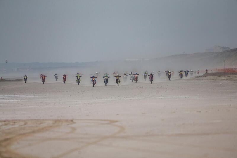 Lo spettacolo da brividi è l’atmosfera, la cittadina Spiaggia di Parigi invasa, “occupata” dalle Moto, è la partenza, ormai migliaia di partecipanti schierati su una griglia a onde. Lo spettacolo da cuore in gola è la partenza in linea in quella bolgia, 2 onde da 600 concorrenti, è quella infinita volata sulla spiaggia battuta tra il mare della Manica e il mare di spettatori, è l’holeshot al termine dei 6 chilometri di bagnasciuga, dove si arriva a oltre 150 all’ora prima di immettersi nell’imbuto della prima curva del tracciato di ritorno, questo sì un purgatorio e poi un inferno di sabbia. Il 16 febbraio 1975 era l’Enduro des Sables creata dal figlio di un dentista di lì, Gilbert Sabine, poi si è chiamata Enduro du Touquet, oggi è l’Enduropale du Touquet-Pas-de-Calais.