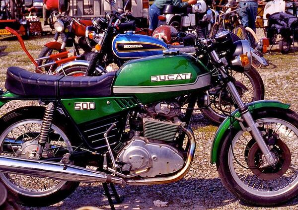 Quello dei bicilindrici paralleli degli anni Settanta è un capitolo dolente, nella storia della Ducati. Si trattava di due modelli (di 500 e di 350 cm3) anomali in quanto non progettati dall’ing. Taglioni, al quale sono dovute tutte le realizzazioni dalla Casa bolognese dal 1955 alla seconda metà degli anni Ottanta. Semplicemente, “Mr. T” non condivideva la scelta della direzione dell’azienda e non aveva voluto avere nulla a che fare con il progetto.