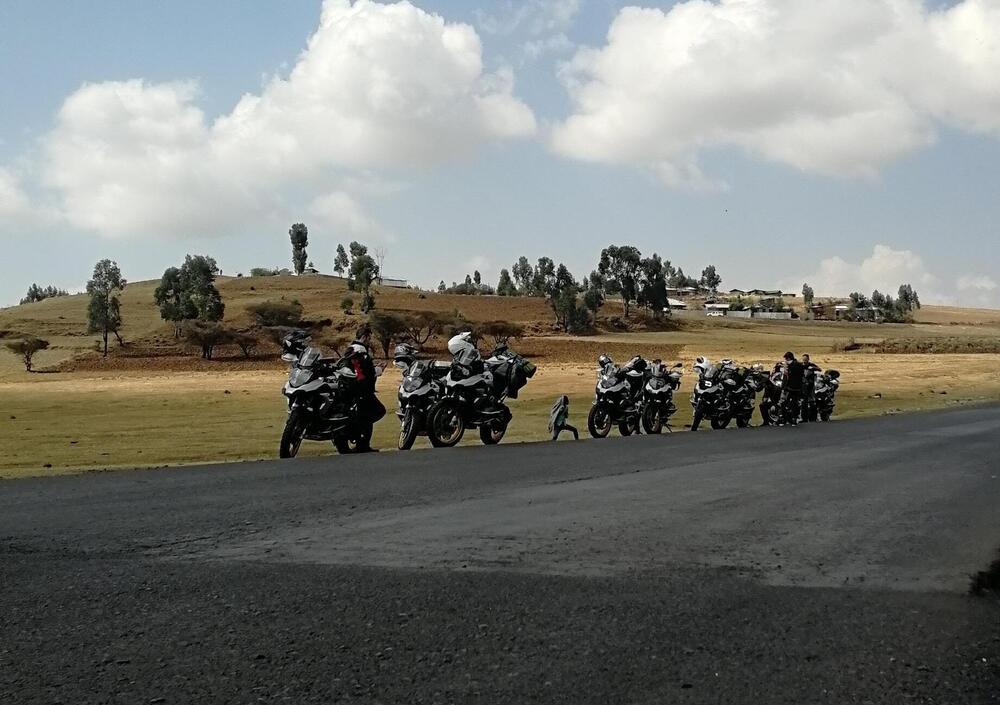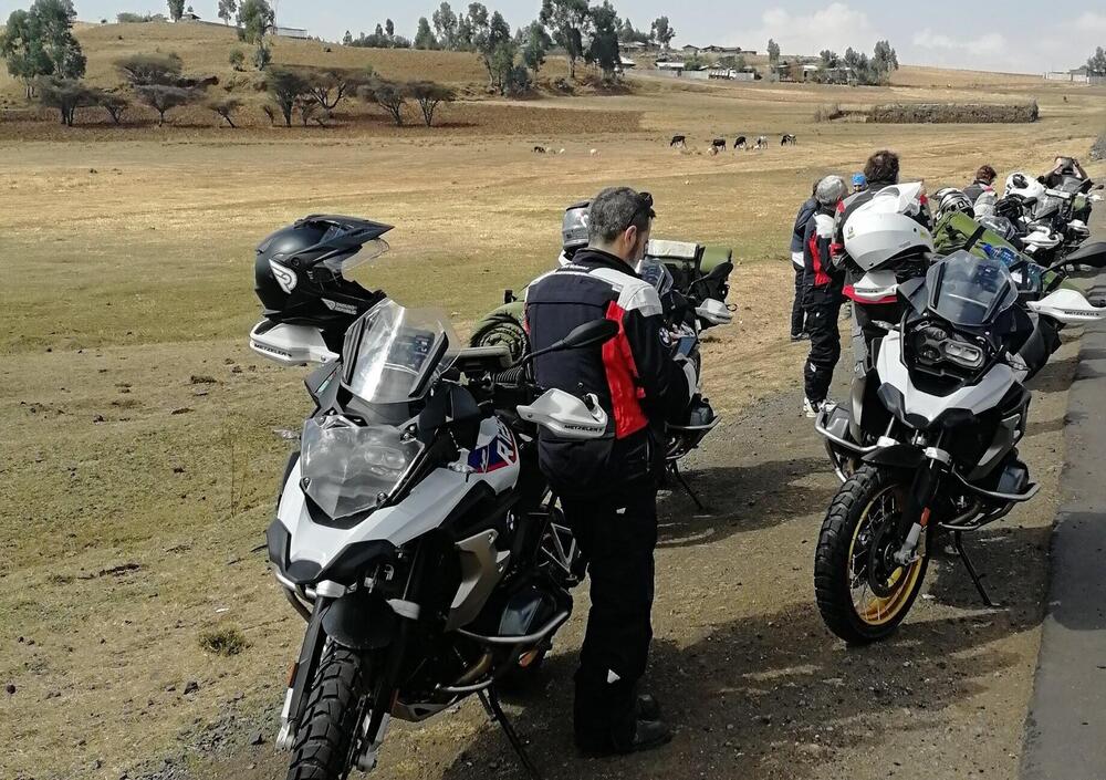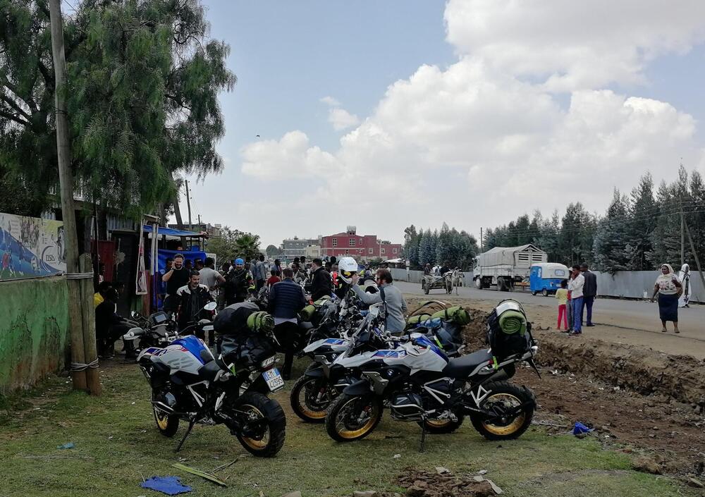 I giorni prima della partenza passano rapidi tra mille incombenze burocratiche. Visto: fatto. Vaccini: fatti (quante siringate, non me lo aspettavo!). Voli: presi (l’Etiopia è collegata benissimo con l’Italia, d’altra parte la comunità etiope in Italia è molto forte). Non ci resta che preparare l’abbigliamento (con tutte, ma proprio tutte le protezioni e ventilato, là farà caldo), i medicinali di prima emergenza, l’attrezzatura da bivacco (torce, salviette, disinfettanti, tenda ecc). Chiuse le borse, per un totale di 30 kg da caricare sulla moto, si decolla da Malpensa. Ad Addis Abeba ci stanno già aspettando le BMW R 1250 GS HP di Enduro Republic, dotate di gomme Metzeler Karoo 3.