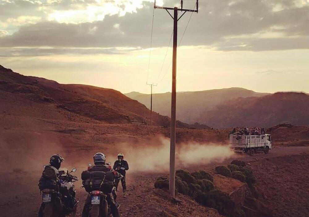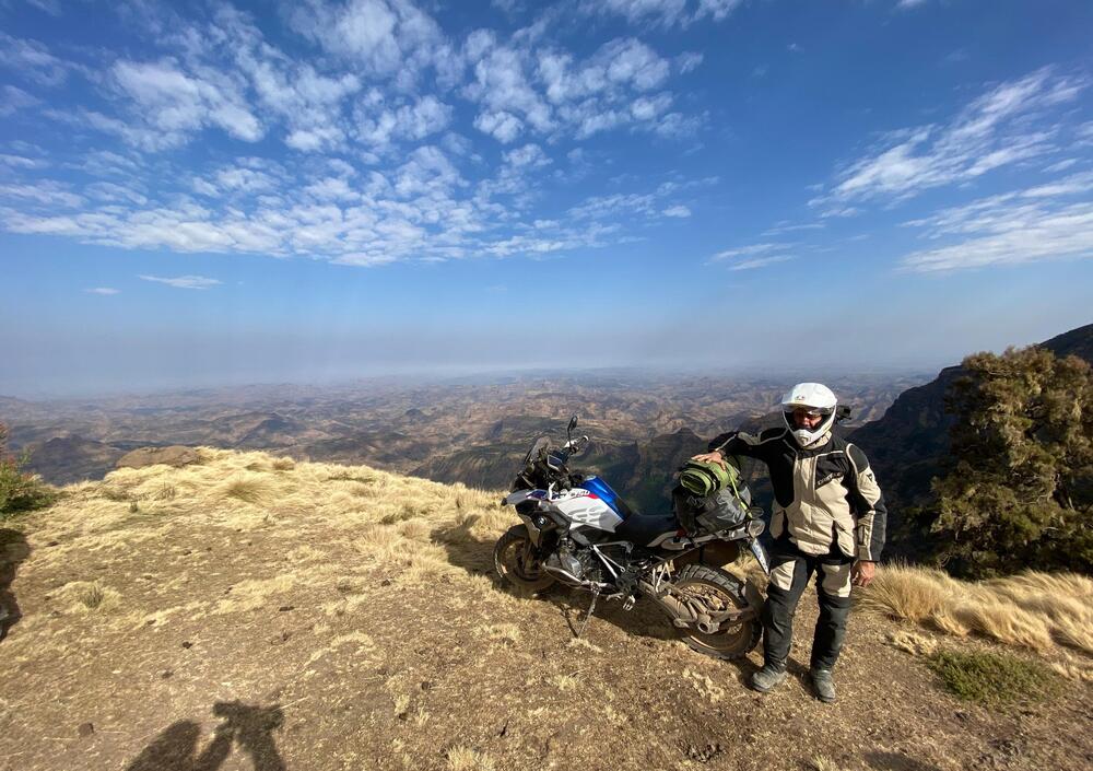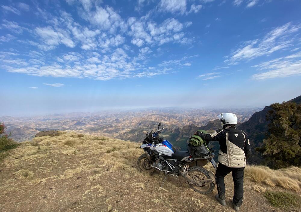 Oggi 453 km da Dejen a Gondar. Quasi una tappa marathon in fuoristrada, con una caduta e una foratura (nel gruppo), risolte. Partiti alle 7, siamo arrivati col buio alle 21. È stata dura, ma gli altipiani a 3.000 metri ci hanno aperto scenari stupefacenti. E poi i bambini etiopi ti regalano sorrisi e gioia, persino cibo. Loro, che non hanno nulla. Questa è una lezione di vita che dovremmo toccare tutti almeno una volta. Domani portiamo le moto ai 4.200 metri di Ras Buahit, ovviamente in fuoristrada, che qui di asfalto ce n'è poco.