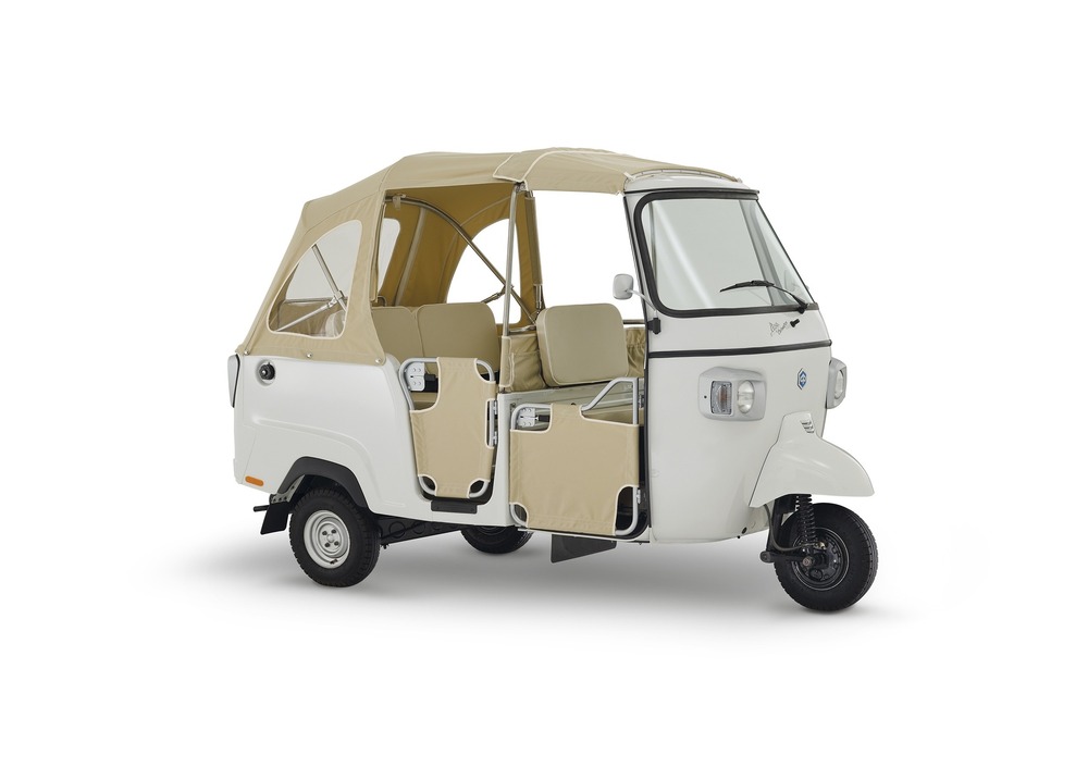 Rinato nel 2007 e ispirato ai ruggenti anni Cinquanta, Ape Calessino ha stupito per la versatilità d’uso. Progettato per ospitare due passeggeri più il guidatore, è un veicolo originalissimo e in grado di distinguersi grazie alla sua personalità e a un design unico nel suo genere che si ripropone oggi in una veste estetica rinnovata. Si distingue per la carrozzeria rivista nella zona posteriore, dove ora trovano posto gruppi ottici dalle linee più fresche e dinamiche, giusto connubio tra tradizione italiana e modernità. Rinnovata anche la gamma colori, che affianca ai già noti Artic White e Western Red la nuova tinta Neptune Blue, inedita interpretazione dei classici colori yachting.