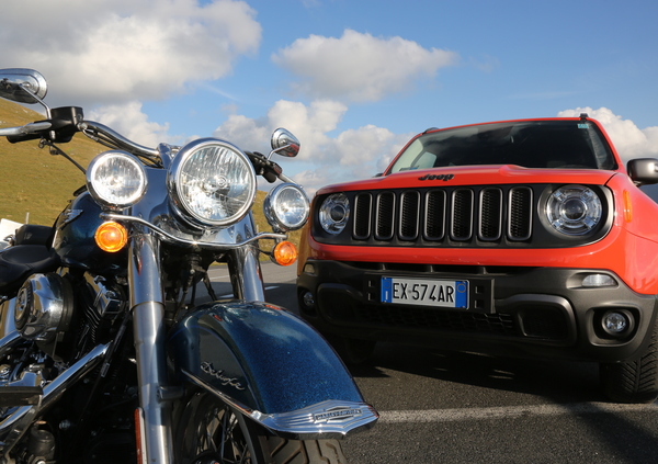 Ovviamente, come inviati di Moto.it, non potevamo accontentarci delle divertenti Jeep. Ci è venuta incontro l’Harley-Davidson, che ha messo a nostra disposizione una fiammante Switchback rossa che è diventata la nostra compagna di scorribande sulle Alpi per due giorni.