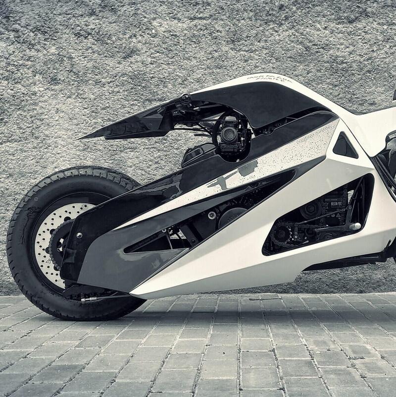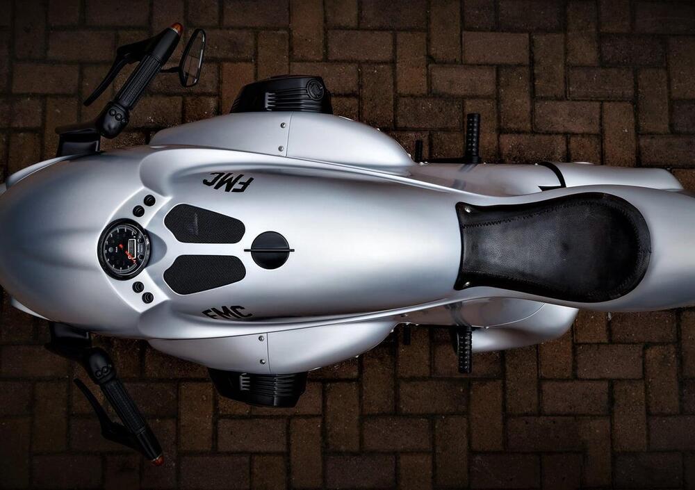 La Storm, questo il nome della moto, presenta tutte le parti in alluminio unite tramite rivetti a mimare le giunzioni presenti sugli aerei e ciascuna delle prese d'aria presenti sul suo bodywork ha una precisa funzione tecnica. Quelle anteriori presidiano il raffreddamento dell'impianto frenante mentre il radiatore dell'olio è riposizionato e raffreddato attraverso una presa d'aria dinamica e una ventola.