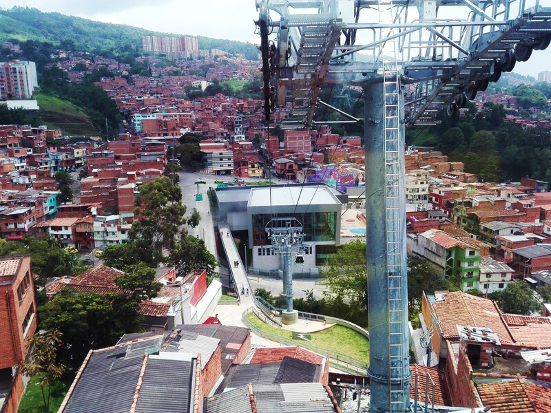 Medellin è una città di oltre due milioni di abitanti, stretta tra le colline tanto da non riuscire ad ospitare un aeroporto internazionale, rumorosa di gente cordiale e a noi, per lo meno ad opinione di chi scrive, molto affine. Il centro è assediato dagli insediamenti popolari situati sui pendii limitrofi, dove risiede el pueblo composto da fattorini, autisti, operai, impiegati, commercianti di piccolo cabotaggio, che ogni giorno, grazie alla metro cable (la teleferica che collega con quattro linee il centro alla periferia, e forse l’opera che ha più contribuito a segnare un cambio di passo verso la crescita economica e l’inclusione sociale nella regione di Antiochia), può raggiungere il posto di lavoro in tempi ragionevoli e praticamente gratis, mentre prima servivano due ore di pazienza e quando questa finiva forse restava solo la rabbia.