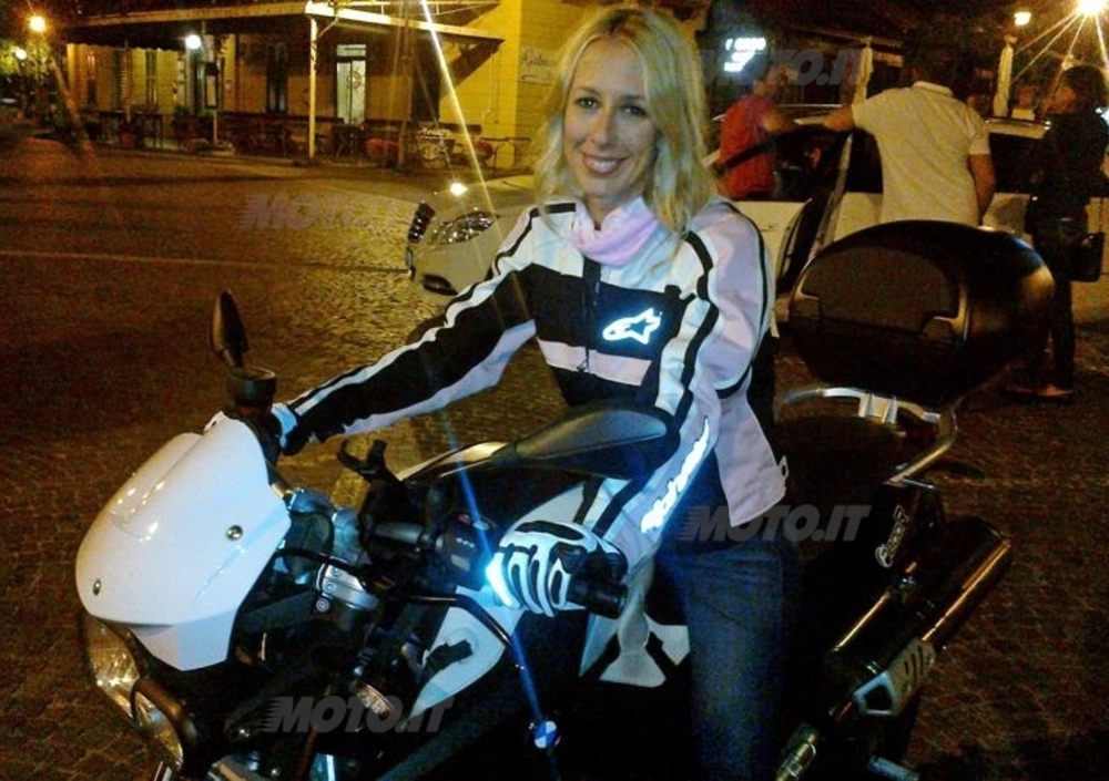 Giorgia è una motociclista appassionata, spesso salta in sella alla sua Virago per uscire col fratello e con i suoi amici ducatisti.