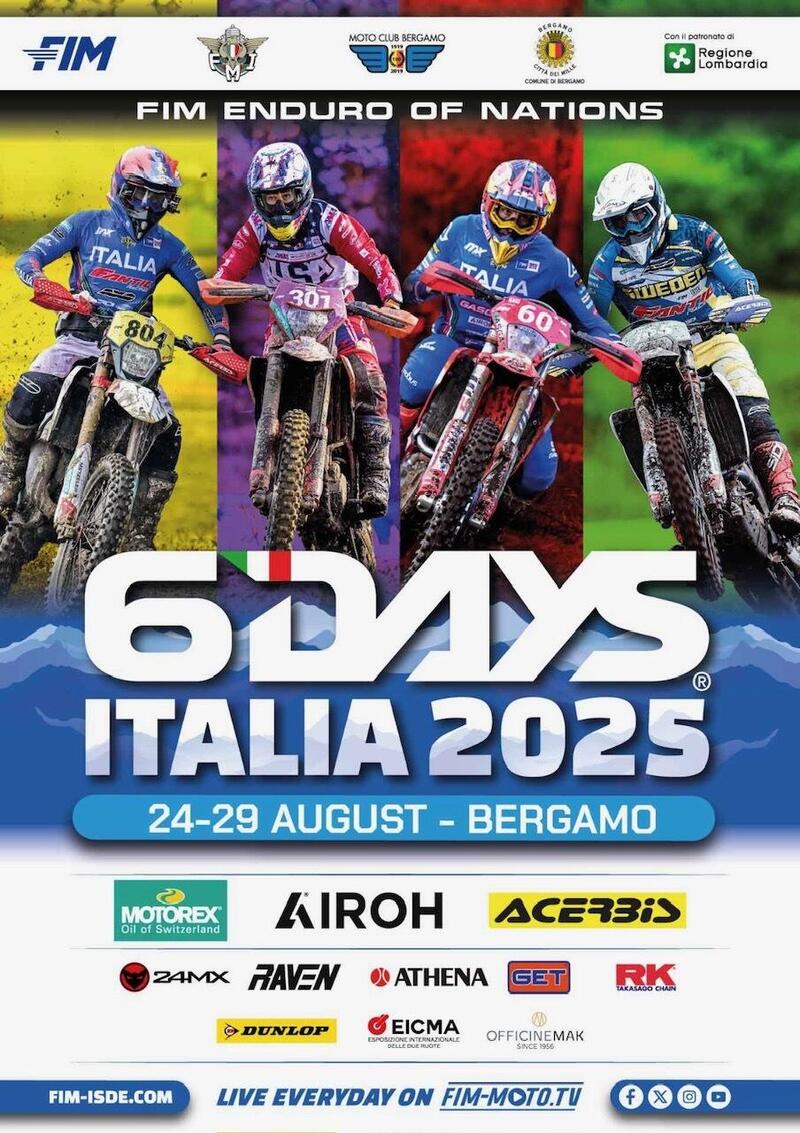Bergamo, 26 Giugno. L'"Olimpiade dell'Enduro Italia 2025" è stata presentata ufficialmente “in casa”, a Bergamo, città che ospiterà la 99ma edizione della Sei Giorni Internazionale di Enduro, organizzata a cura del Moto Club “di casa”, il MC Bergamo. La città e le sue Valli sono alla vigilia di un momento storico e irripetibile del grande Sport di cui è una delle culle. Il ritorno “a casa” è atteso da quasi 40 anni, e questa è la terra che alla Regolarità, prima, e all’Enduro, poi, ha dato campioni, team, fabbriche che hanno fatto la Storia delle due ruote e del Fuoristrada.