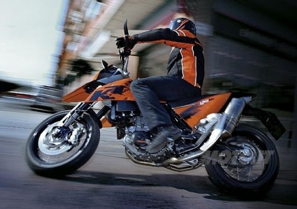 KTM 690 SM è spinta dal monocilindrico LC4, riferimento nella sua categoria per quanto riguarda peso, dimensioni e prestazioni.