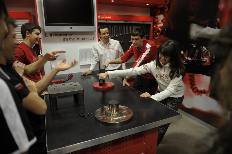Al Festival della Scienza di Genova, che vanta una media di circa 180.000 visitatori per edizione, Ducati è presente con uno stand attrezzato di macchinari interattivi che consentono di sperimentare la concretezza dei principi fisici studiati a scuola, e il legame tra questi e la progettazione di una moto Ducati. Studenti e accompagnatori posso toccare con mano il principio fisico su cui, ad esempio, poggia il manovellismo della biella sulla manovella dell’albero motore di una moto; oppure che tra massa e peso c’è differenza sostanziale, perché nella fisica sono concetti ben distinti anche se comunemente ritenuti identici.