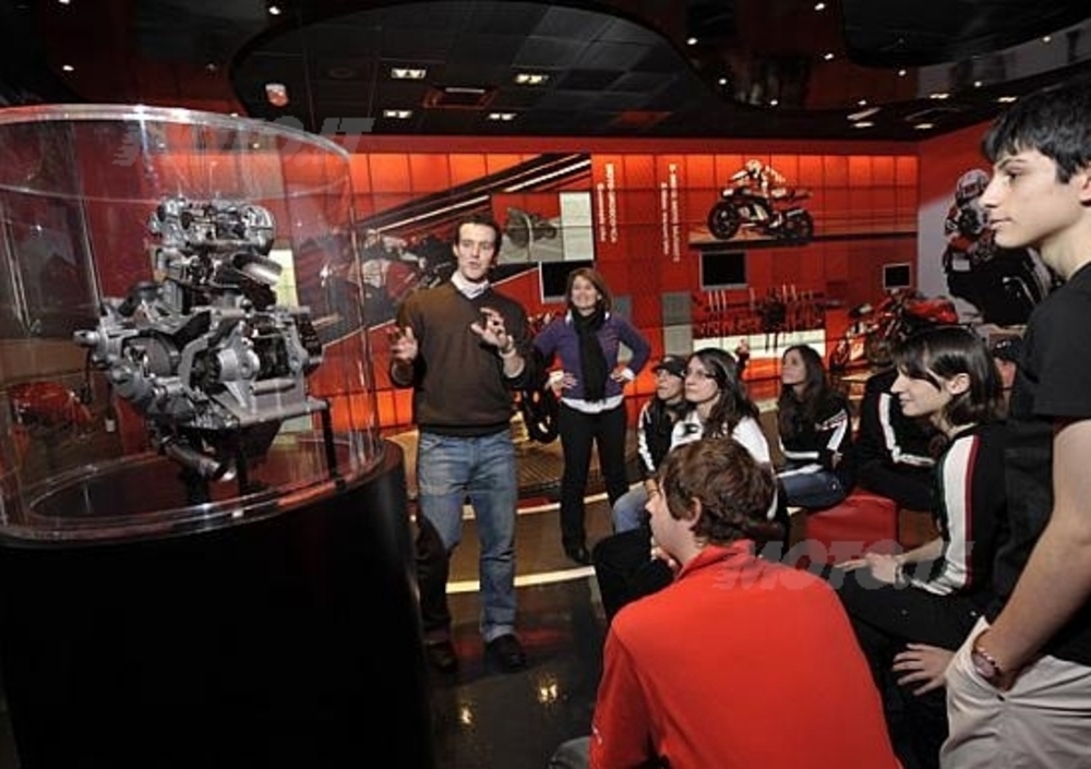 Dopo aver concluso il percorso all’interno delle tre sale del laboratorio è prevista una visita alla fabbrica Ducati per toccare con mano come i principi fisici si trasformano, attraverso il lavoro dei tecnici e degli operai Ducati, nelle moto che si possono ammirare sulle strade di tutto il mondo.