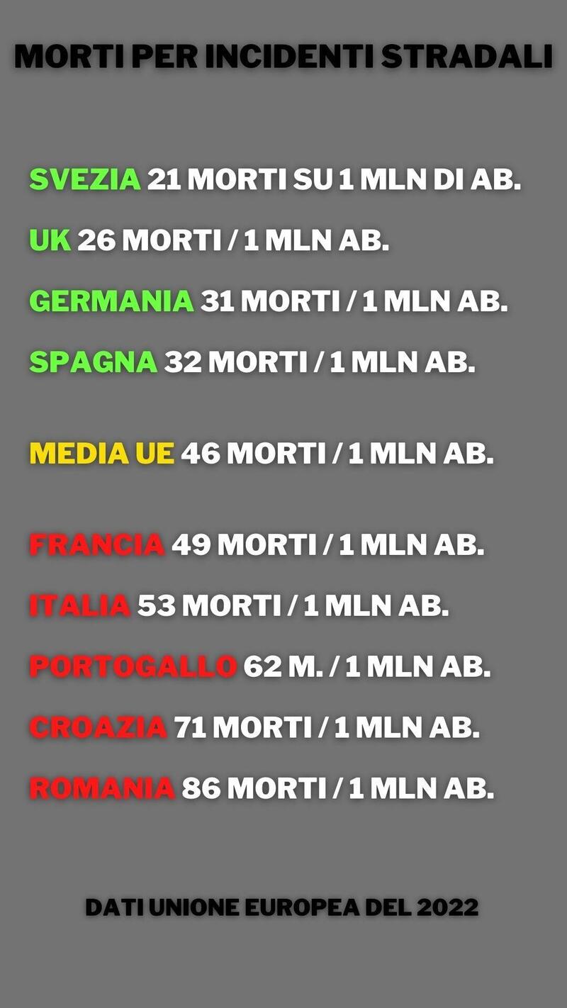 In Francia i morti sono 49 e in Italia 53 quindi il paese con più autovelox non ha un numero di morti inferiore. Ci sono strade meno sicure come quelle del Portogallo, 62 morti per milione di abitanti e quelle di Croazia e Romania, 71 e 86.