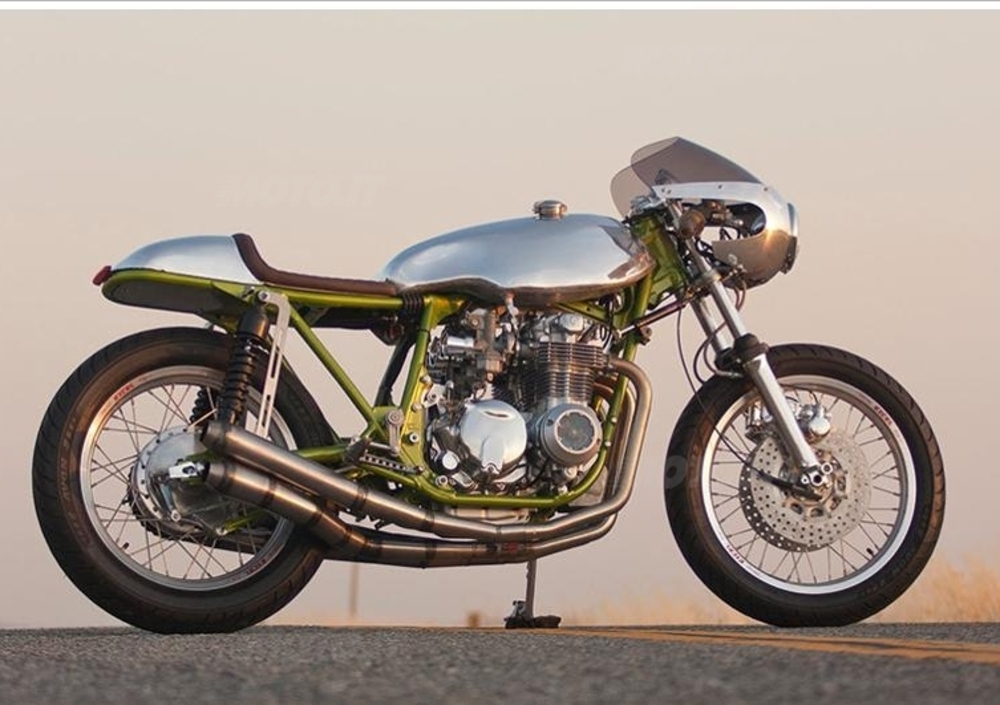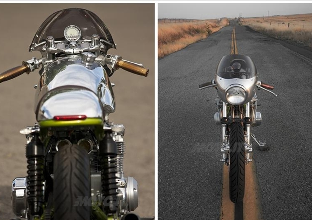 Serbatoio e zona sella sono state cassate in favore di un serbatoio proveniente da una Norton Sprint e da un codino realizzato artigianalmente in pezzo unico, entrambi ispirati da un'opera analoga di TAB Classics. Completa l'opera una carenatura in due pezzi di origine giapponese (anch'essa in alluminio) che racchiude la strumentazione Acewell e fa da cornice a semimanubri in alluminio completati da pedane arretrate della scandinava Raask. I cerchi sono due Excel a raggi da 18".