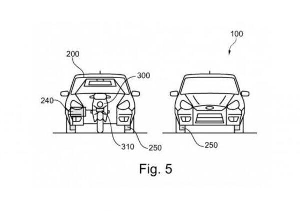 Ovviamente i dettagli non sono ancora stati resi noti, abbiamo però i disegni che sono stati depositati assieme al brevetto. L’auto, che dovrebbe essere a propulsione elettrica, sembrerebbe essere una monovolume: simile ad una C-Max, ingloba al proprio interno lo scooter che entra nella carrozzeria grazie ad un sistema di tipo elettrico ed idraulico e ad un binario piazzato tra le due ruote anteriori. Per ottimizzare gli spazi, Ford ha fatto in modo tale che la strumentazione dello scooter diventi la consolle centrale dell'auto, mentre la sella si trasforma nel bracciolo centrale interposto tra guidatore e passeggero. Quando l’auto è in movimento, le ruote dello scooter rimarrebbero rialzate rispetto alla strada, ma si prevede anche la possibilità di utilizzare la ruota posteriore del "due ruote" per aumentare la trazione della vettura.