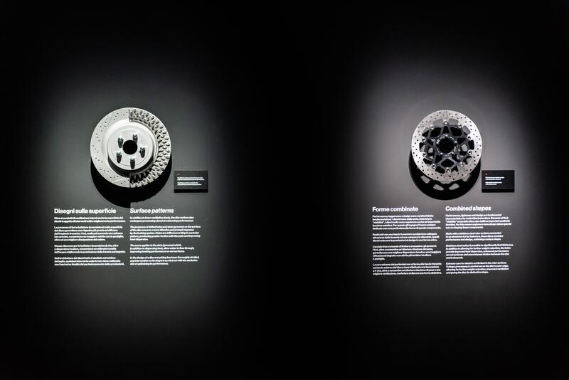 L'incontro di Alberto Bombassei con Enzo Ferrari, le sfide tecnologiche che portano nel 1980 al successo dell’adozione delle prime pinze in alluminio sull’Alfetta GTV, la ricerca stilistica caratterizzante anche attraverso l'introduzione della verniciatura delle pinze in rosso, ma anche la celebrazione del Marchio attraverso uno dei videgiochi più iconici in tema di motori come GranTurismo, sono tutti temi toccati nelle sezioni della mostra attraverso le esperienze multimediali che toccano anche la conquista nel 2004 del Compasso d'Oro il più antico e prestigioso premio di design industriale al mondo, con l'impianto frenante in carbonio ceramico per vetture da strada e, nel 2020, con la pinza freno dedicata alle Formula E.
