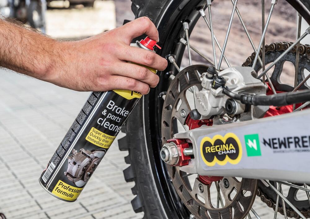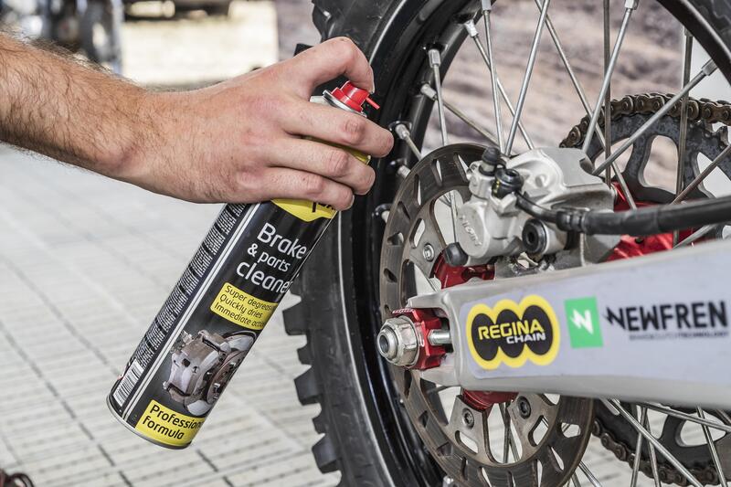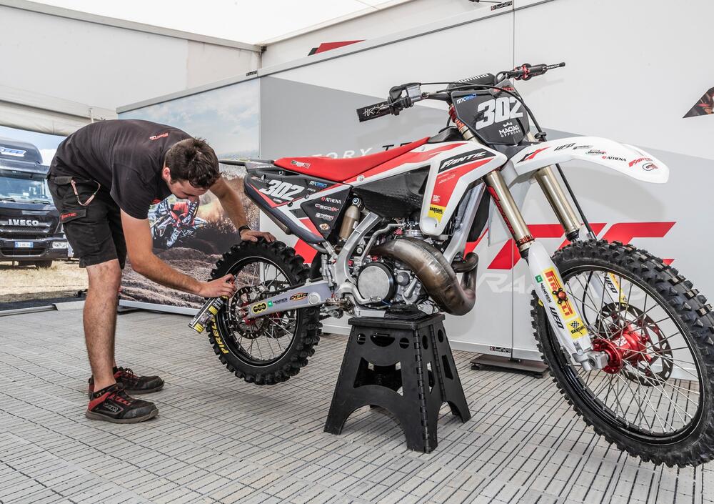 “Nel cross tutta la manutenzione si conta in ore, come sapete; per l’impianto frenante parliamo di intervalli di 4/5 ore al massimo dopodiché bisogna procedere ad effettuare una pulizia completa, per rimuovere tutto ciò che si ‘incolla’ al disco e uno spurgo. È importantissimo utilizzare sempre prodotti specifici e di elevata qualità - noi, come sapete, utilizziamo Bardahl praticamente da sempre - perché molte soluzioni generiche tendono ad essere oleosi, caratteristica che bisogna ovviamente evitare tassativamente. I brake cleaner specifici invece puliscono e sgrassano, ottenendo il risultato desiderato”