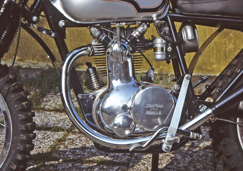 La nostra Parilla si è spinta ancora più avanti, lungo questa strada. Senza arrivare ad adottare un autentico schema monoalbero, per la sua famosa 175 (della quale all’inizio degli anni Sessanta è stata anche realizzata una versione 250, destinata al mercato USA) il progettista William Soncini ha dotato il basamento e il coperchio laterale sinistro del motore di un “prolungamento” parallelo al cilindro, realizzando una cartella nella quale trovavano posto la catena di distribuzione e, nella parte superiore, l’albero a camme. Quest’ultimo era dotato di un unico eccentrico, che azionava entrambe le valvole, inclinate tra loro di 90°, per mezzo di punterie, puntalini e bilancieri particolarmente leggeri. La catena di distribuzione aveva una lunghezza notevolmente inferiore a quella che avrebbe avuto se fosse stato adottato uno schema monoalbero, e questo non solo grazie alla posizione dell’albero a camme (che si veniva a trovare in corrispondenza della parte inferiore della testa) ma anche perché non prendeva il moto direttamente dall’albero a gomito. La cosa aveva la sua importanza, in un’epoca nella quale realizzare efficaci tenditori appariva assai problematico (in molti casi non si usavano neanche, con i risultati che si possono immaginare). Questa distribuzione di tipo inconsueto funzionava decisamente bene, come dimostrato dal fatto che una Parilla 175 MSDS si è imposta nel Motogiro del 1957 e che una 250 è arrivata seconda nel Gran Premio degli USA del 1964, svoltosi sulla velocissima pista di Daytona. Un risultato straordinario, per quella che era fondamentalmente una moto di serie ottimamente preparata (dallo specialista Orin Hall).