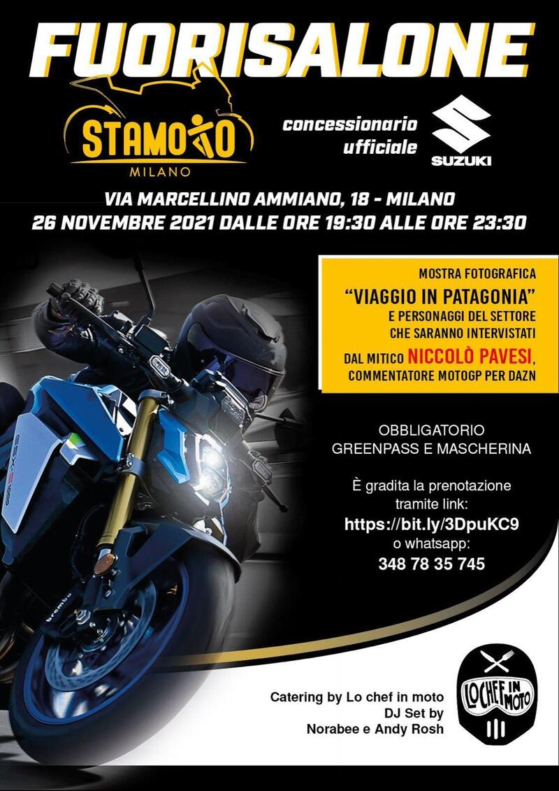 Il concessionario Stamoto si rende protagonista del Fuorisalone EICMA 2021 con una festa a tema grandi viaggi ed esplorazioni. I locali di via Marcellino Ammiano 18 saranno la cornice di un party con l’inaugurazione della mostra fotografica “Viaggio in Patagonia”, racconto di un’avventura in moto attraverso Cile e Argentina. A presentare le immagini e condividere storie e aneddoti ci sarà l’autore Federico Tondelli (di cui trovate la nostra intervista qui, nel nostro Motofestival) in un talkshow presentato da Niccolò Pavesi, commentatore MotoGP per DAZN.