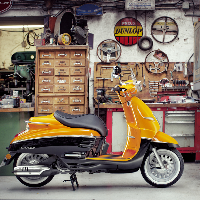 "Django Evasion": richiama il desiderio di vivere in un modo diverso. Il desiderio di uscire dalla ctta' e incontrare la natura. E Django lo fa con i colori. E' uno scooter pensato per il relax per abbandonarsi ai piccoli piaceri della vita: un paesaggio, un viso amato, l’odore dei prati, il guardare ciò che ci circonda.