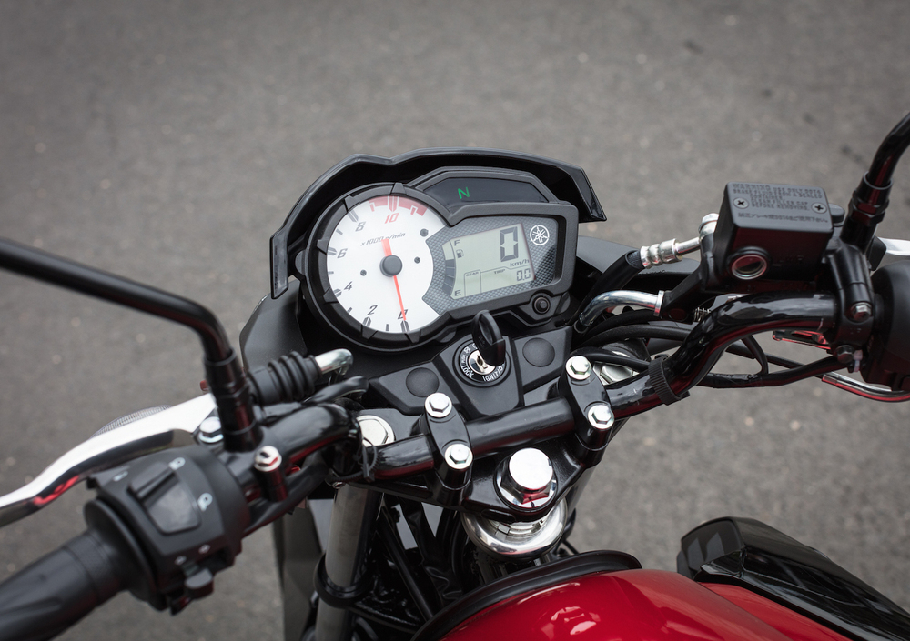 Comunque vi trasmettiamo le sensazioni visive che questa moto suscita: naked essenziale al confine con l’anoressico, presenta motore a due valvole, serbatoio da 14 litri (per un’autonomia potenziale di quasi 300 km), un bel faro aggressivo, strumentazione digital-analogica dalla grafica moderna, cerchi da 18” con pneumatici stretti per la massima maneggevolezza, frenata combinata che si attiva su disco anteriore da 245 mm e sul tamburo (!) posteriore da 130.