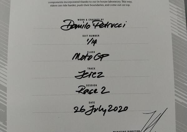Gli indirizzi per partecipare alle aste sono rispettivamente questo per la tuta di Danilo Petrucci, e questo invece per quella di Lorenzo Dalla Porta. Mi raccomando, una mano sul cuore e una sul portafogli, e partecipate numerosi!