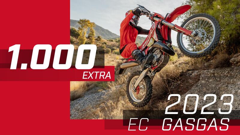 GASGAS lancia la promozione “EXTRA 1.000” grazie alla quale a fronte dell’acquisto di un modello della gamma Enduro 2023, i Concessionari Ufficiali riconoscono un voucher del valore di 1.000 euro da spendere in Abbigliamento e Accessori Tecnici.