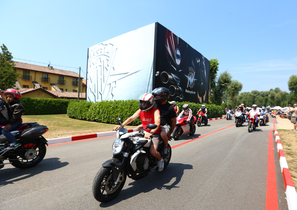 Sul palco sono saliti i piloti MV che corrono quest'anno nel mondiale supersport, Jules Cluzel e Lorenzo Zanetti, e campioni del passato come Giacomo Agostini e Marco Lucchinelli, e poi Gilberto Milani e i dakariani Ciro De Petri e Renato Zocchi.