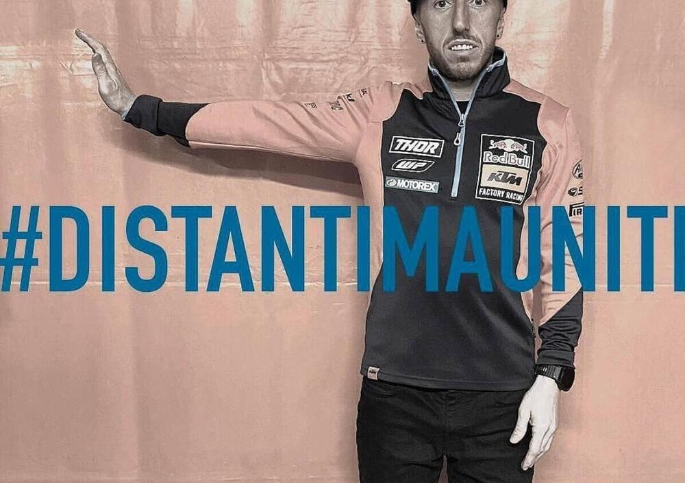 Nei giorni scorsi, Valentino Rossi, Andrea Dovizioso, Antonio Cairoli, Kiara Fontanesi e tanti altri licenziati Federmoto hanno aderito alla campagna ampagna promossa dal Ministero dello Sport per comunicare, soprattutto ai giovani, che è indispensabile rimanere in casa o, quando proprio non è possibile, mantenere la distanza di sicurezza identificata dall'hashtag #distantimauniti.