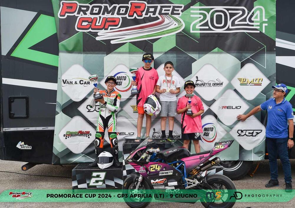 In Gara2 parte male Placidi che perde diverse posizioni, mente Barone ancora perfetto in partenza che si prende la leadership della gara. Scivola in curva uno nuovamente Lopez ed è costretto così a ritirarsi. Quattro i piloti in testa, tutti davvero vicini con Barone, Morandi, Surace e Placidi. Morandi riesce a passare in testa al gruppo, mentre Barone scivola secondo. Infuocato Placidi che recupera Surace e poi Barone. Rimangono vicinissimi i quattro con Placidi che riesce a passare anche Morandi di forza. Piccolo problema per Morandi che perde di netto due posizioni, proprio nel frangente in cui Barone incappa in una spaventosa sbacchettata, riesce a riprendere la moto perdendo però le due posizioni su Morandi e Surace. Caduta per Calascibetta che provoca la bandiera rossa e di conseguenza una nuova ripartenza. Alla ripartenza parte molto bene Surace, mentre Placidi e Morandi perdono ancora posizioni. Placidi si sbarazza subito degli avversari e va a prendere la posizione di Surace. Anche per la quinta posizione si ripropone la bagarre che si stava accendendo nei primi giri. Carlo Mori, David e Alessandro Di Donato battagliano, con David che avrà la meglio al traguardo. Placidi vince ancora con due secondi di vantaggio e porta a casa punti importantissimi per il campionato portandosi a quaranta lunghezze dal secondo. La vera lotta si consuma con Surace e Morandi che tengono tutti con il fiato sospeso fino al traguardo dove esulta Surace e tira qualche colpo al manubrio Morandi. Punti fondamentali per Surace che si instaura primo in campionato per la classe Leggeri, al netto di tre gare, allungando di 45 punti proprio su Morandi che conta una gara in meno rispetto all’avversario.