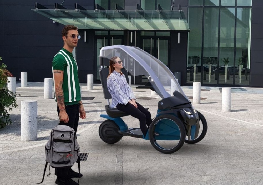Guida autonoma (è il mezzo che raggiunge l’utente e non il contrario) e auto bilanciamento a bassa velocità sono due delle caratteristiche di Bora, veicolo progettato da Giulio Vescovi, Michela Piccolo e Marco Miotti.