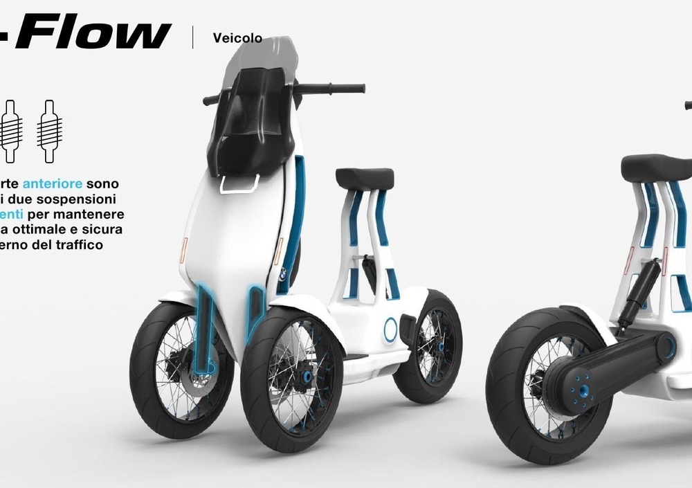 CI-Flow è un scooter elettrico, ancora a tre ruote, molto compatto nelle dimensioni, monoposto e pensato per i turisti che visitano le città e quindi in aree con una forte presenza di percorsi pedonali.