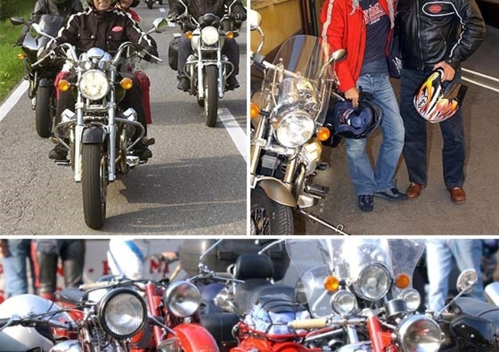 Alle 13,30 un emozionantissimo appuntamento con la storia ha radunato davanti all'ingresso della Moto Guzzi centinaia di bicilindrici a V di 90° rombanti, pronti a scattare per ripercorrere le mitiche strade che hanno visto correre i più grandi eroi del motociclismo, ovvero, quelle del "Circuito del Lario".