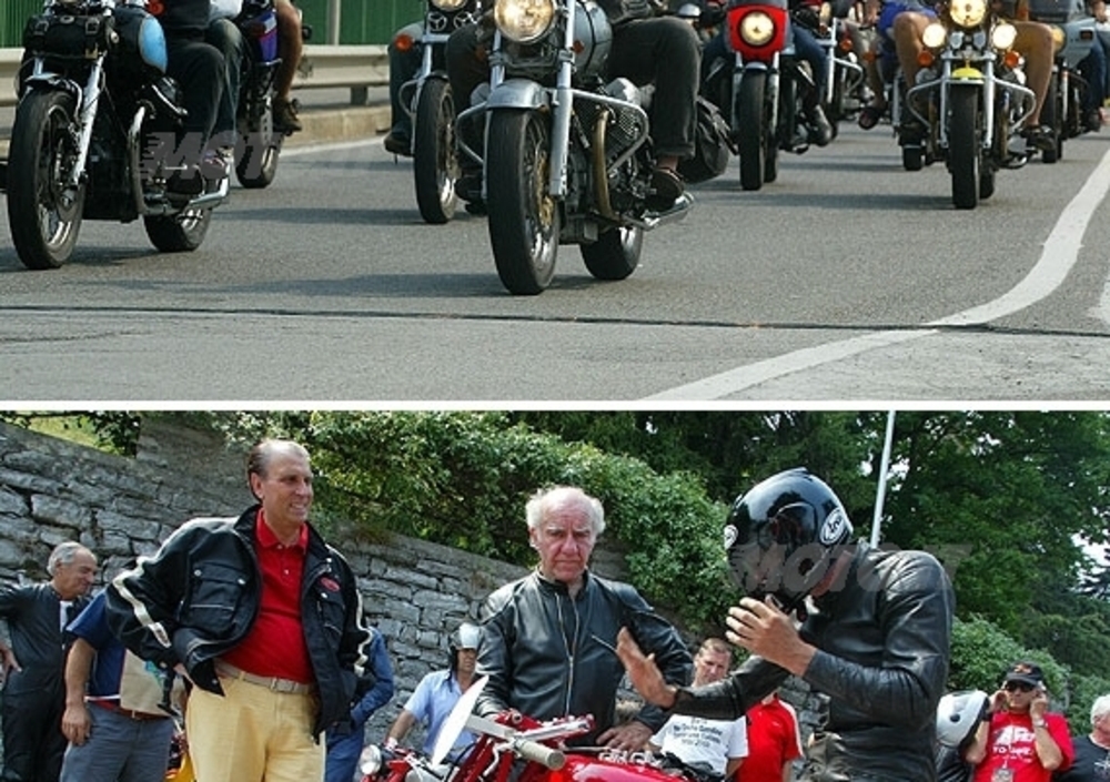 Un momento molto emozionante nella giornata di sabato, è stato rappresentato dalla partenza delle bicilindriche per il “Circuito del Lario”. Scortate dalla Polizia Stradale e con il Presidente Beggio in sella alla BREVA V 750 IE a guidare il gruppo, centinaia di moto sono partite in gruppo dal piazzale di fronte alla Fabbrica, con destinazione Civenna, dove alle ore 15.00 lo stesso Presidente ha dato il via alla tappa Civenna-Asso (terzo tratto della rievocazione storica).