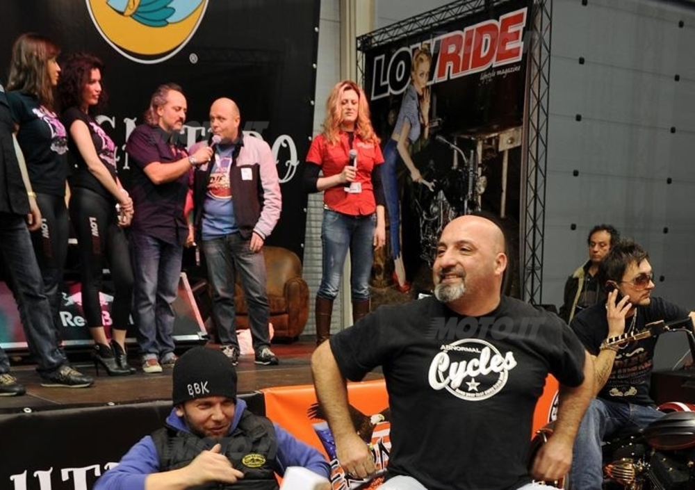 All’interno del padiglione 8, presso lo stand Magnitudo-Geronimo’s, è andata in scena la premiazione del bike show organizzata dalla rivista LowRide. Numerosi i preparatori pronti a confrontarsi in una gara caratterizzata dalla fantasia e dall’ingegno stilistico e meccanico che ha visto oltre 40 moto fare da “bellezze” a due ruote di questo spettacolare contest.