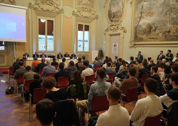 Il Presidente della Federazione Motociclistica italiana, avvocato Giovanni Copioli ha aperto il suo intervento con le personali emozioni di ritrovarsi all’interno dell’Università nella quale ha studiato ed ha ringraziato gli organizzatori per la grande possibilità di portare il motociclismo e i suoi aspetti in una sede così prestigiosa. Poi ha illustrato i molti e variegati aspetti della nostra FMI e le sue declinazioni che vanno dalle Sport, all’Educazione Stradale fino al Registro Storico. Ha poi sottolineato l’importanza della nostra Federazione, che è una delle più importanti al mondo non solo per titoli mondiali (ben 81) ma anche per l’impegno di aziende che sono leader di riferimento.