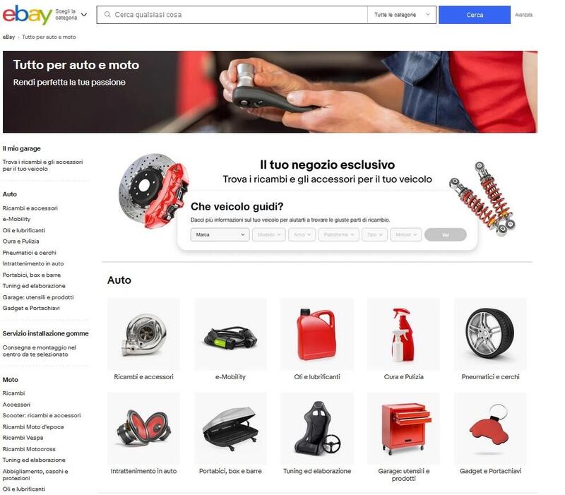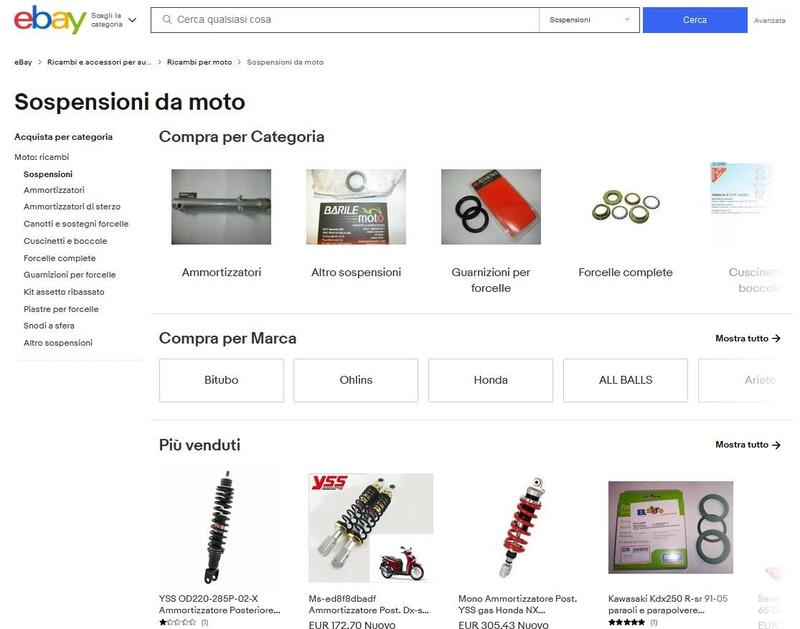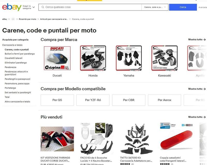Come fare quindi per orientarsi? Il punto di partenza (su eBay, tra l'altro potete anche trovare moltissime risorse per la moto d'epoca e per il suo restauro) è la link alla sezione Auto e Moto: da qui, sul menu "Moto" trovate l'aera dedicata ai ricambi dove potete cercare per categoria o per brand.