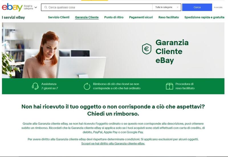Ma la tranquillità è ancora superiore se pensate che per ogni acquisto effettuato sul marketplace con carta di credito, di debito, PayPal, Apple Pay o con Google Pay opera la Garanzia Cliente eBay che mette al riparo velocemente da mancate consegne o da oggetti che una volta arrivati non corrispondono alla descrizione fatta dal venditore. Eventualità comunque piuttosto remota, dato che il noto sistema di feedback operante sulla piattaforma rende decisamente svantaggioso per un venditore (sia professionale che privato) mettere a repentaglio la propria affidabilità agli occhi dell'intera community.