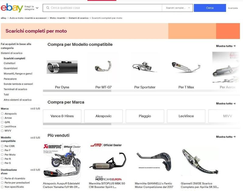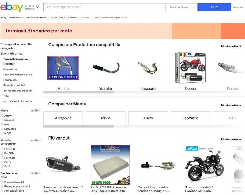 Paura di perdersi? eBay può decisamente fare al caso vostro: da oltre un ventennio re indiscusso delle compravendite sul web, il marketplace resta uno dei migliori metodi per avere non soltanto una panoramica precisa e ampia su quanto offre il mercato dell'aftermarket ma anche di poter trovare scarichi nuovi o usati -ad una quotazione vantaggiosa - o, perché no, scarichi originali che possano permettervi di riportare in perfette condizioni la vostra moto o terminare un restauro di una Youngtimer.