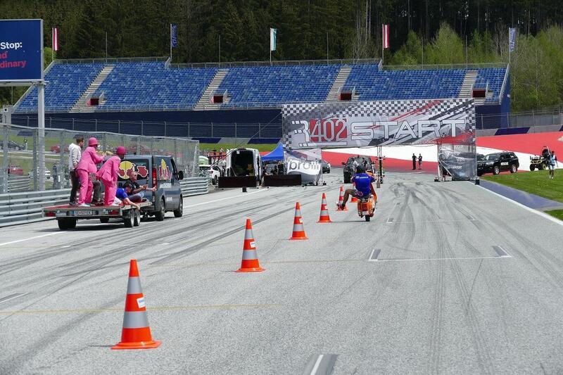 Questa volta lo stuntman austriaco si è cimentato in un Guinnes World Record sul rettilineo di partenza del circuito Red Bull Ring di Spielberg davanti a un pubblico di 30.000 spettatori schierati sulla tribuna centrale.