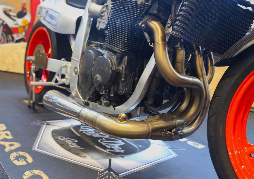 In un Salone come il Motor Bike Expo di Verona è più probabile che ad attirare l'attenzione sia un modello di serie che non una special, vista la (s)proporzione nella presenza delle due rappresentanze. Ed è quasi facile lasciarsi sfuggire un gioiellino come la Suzuki GSX-R allestita da Drag Garage, perché in un panorama come quello della customizzazione, dove ormai le contaminazioni con stili e stilemi racing sono all'ordine del giorno - avendo esaurito tutti i filoni classici - il cervello non registra immediatamente qualcosa di nuovo nel vedere una realizzazione bassa, "cattiva" e (apparentemente) ispirata alle gare d'accelerazione.