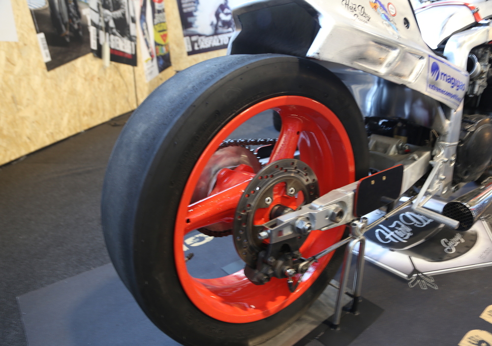Servono due chiacchiere con Fabio Marchiotto e Andrea Signoretto, rispettivamente artefice e pilota de "La China", così si chiama la moto che vedete in foto, per capire che l'ispirazione non c'entra. Questa non è una special All show and no go. Questa è davvero una moto per gare d'accelerazione.