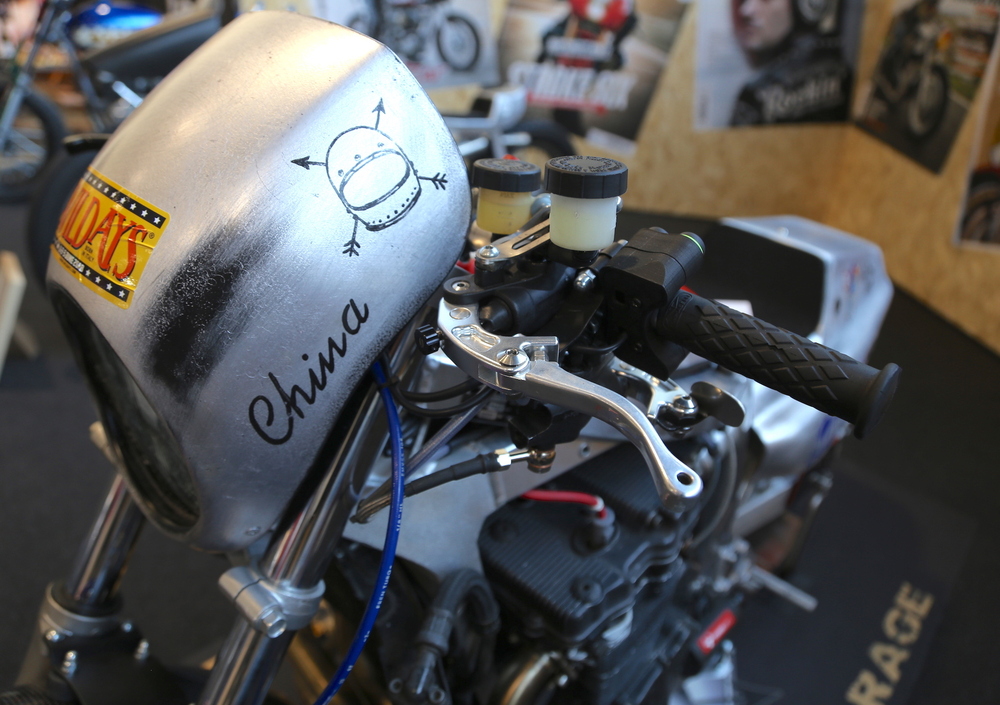 Nata sotto forma di GSX-R 1100 del 1990, la China è stata evidentemente trasformata in maniera quasi irriconoscibile. Oggetto di grandi attenzioni, ovviamente, è stato il motore. Il quadricilindrico aria/olio SACS Suzuki è da sempre uno dei più apprezzati nella specialità per robustezza e potenzialità elaborative. Questo esemplare è stato portato a 1.340 cc - una delle cubature classiche di questo propulsore - rosicchiando poi ancora qualcosa con l'uso di pistoni JE azionati dalle immancabili bielle Carrillo. Le teste sono state lavorate con l'adozione di valvole maggiorate e assi a camme Yoshimura, l'albero è stato naturalmente riequilibrato, e l'alimentazione implementata montando carburatori Mikuni 40RS con relativi cornetti d'aspirazione. Nel lato accensione troviamo un'unità Dynatek Super Pro 4000 e cavi candele MSD 8.5. Lo scarico è un'unità Spark, naturalmente realizzata su misura per "La China".