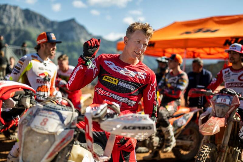 Wade Young, GasGas, in fondo deludente in Galles e all’Erzberg, ha ritrovato ritmo e velocità e, sommando i risultati dei tre giorni di gara, ottiene il quarto posto assoluto. Quinto è Mario Roman, Sherco, appena fuori dai dieci Matt Green, KTM, Rigo Racing.