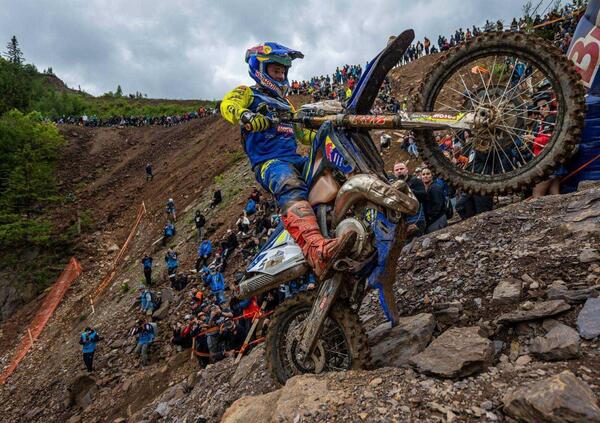 La finalissima vive di almeno 5 “paragrafi” da capogiro. Al colpo di cannone vola in testa Trystan Hart, una delle scoperte recenti della Serie. Il giovane canadese batte un ritmo difficile e altissimo, alle spalle Verona, GasGas, Lettenbichler, KTM, e Billy Bolt, Husqvarna. All’assalto della prima rampa Bolt cadde e resta “intruppato” 30 posizioni indietro. Diventa lo show della classe dell’inglese primo Campione del Mondo Hard Enduro, che in venti minuti di aggressione alla Montagna riesce a risalire fino in testa alla corsa raggiungendo prima Verona e Dominik Olszowy, GasGas, e quindi Lettenbichler e Hart.