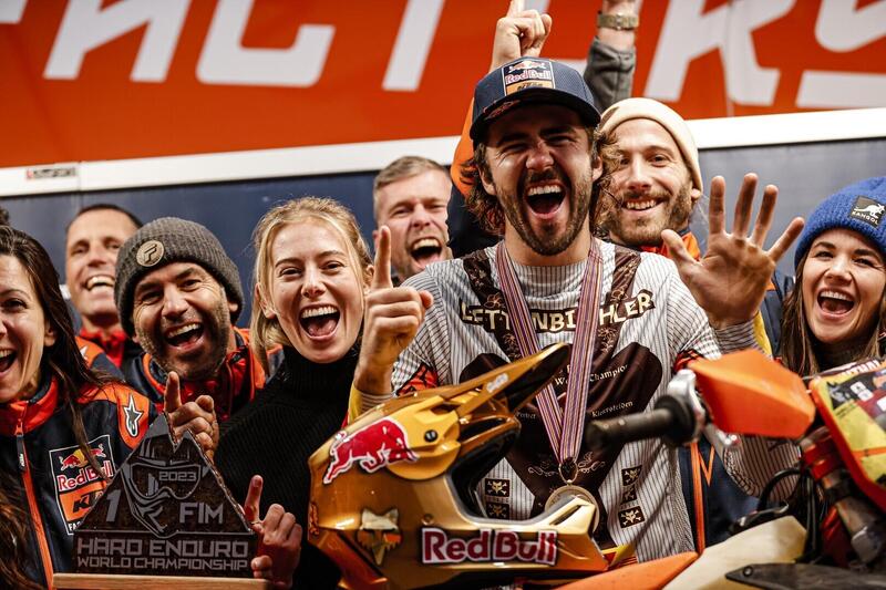 Bene, tempi e molta acqua sotto i ponti del Mondiale sono passati, l’emozione dell’Hard Enduro resta intatta e contagiosa, ma disciplina, attenzione e thriller si polarizzano, almeno in questa stagione appena conclusasi in Germania, su un Campione diventato inattaccabile, di fatto inavvicinabile e imbattibile. Si tratta di Manuel Lettenbichler, figlio di Andreas “Letti” Lettenbichler, Campione 2022 e Mondiale anche nel 2023. Con un plus stratosferico: “Mani” ha vinto tutte le prove di calendario della stagione, invariabilmente vincendo o stravincendo, anche riuscendo a sovvertire situazioni che sembravano compromesse o in pericoloso bilico.