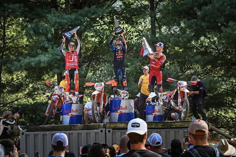 Mani Lettenbichler, Red Bull KTM Factory Racing, ha subito messo in tavola le sue carte, vincendo la gara iniziale e assicurandosi un piazzamento nella seconda. La battaglia è arrivata con Teodor Kabakchiev, Sherco Factory Racing, che ha lottato fino all'ultimo per finire a soli quattro centesimi di secondo dal Campione del Mondo. Al terzo posto si è piazzato Trystan Hart, FMF KTM Factory Racing, già vincitore della Red Bull TKO 2022, che ha quindi approfittato con successo dell’”esperienza”.