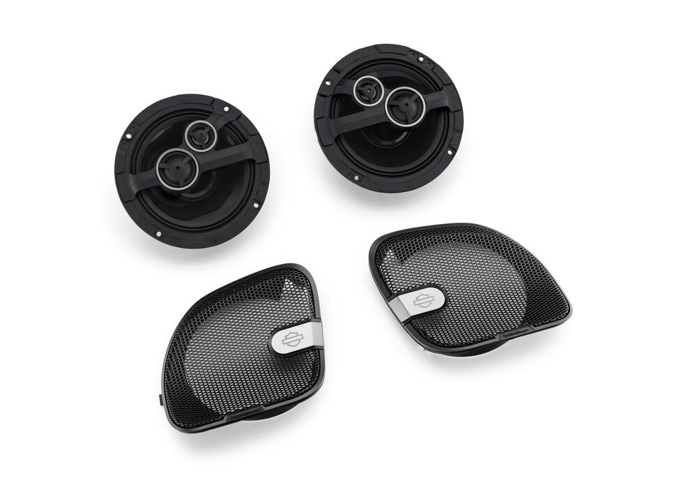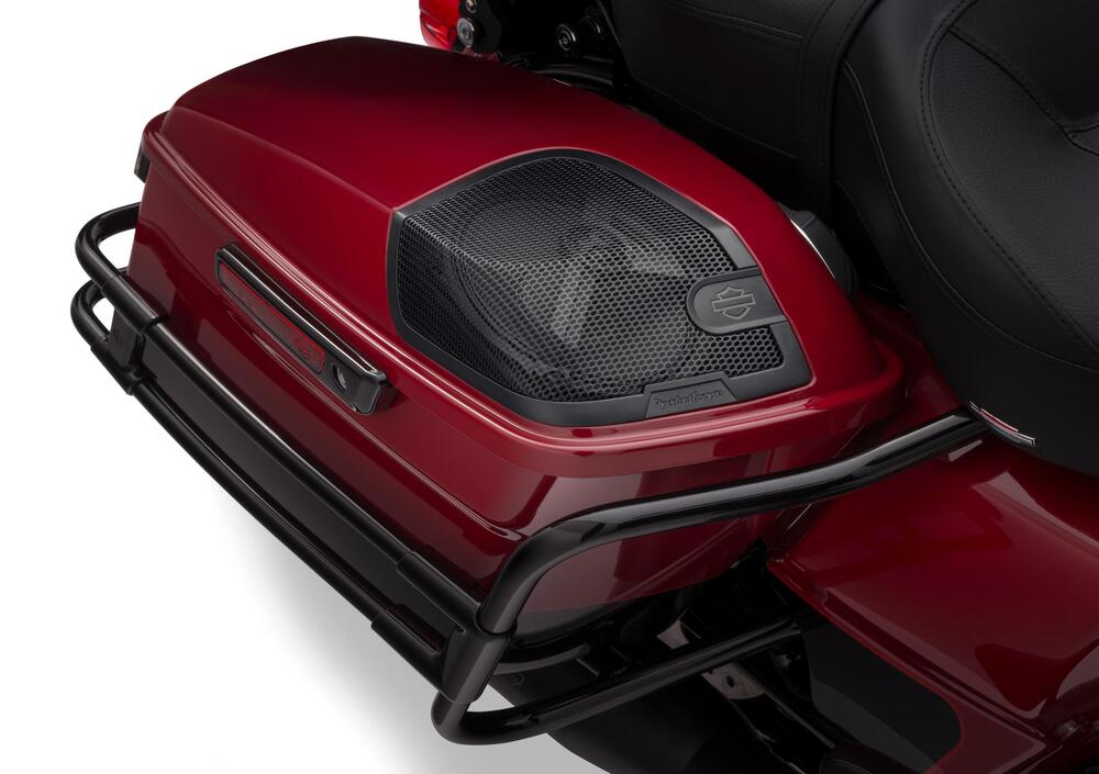 il nuovo impianto audio Harley-Davidson Audio con tecnologia Rockford Fosgate con altoparlanti triassiali Stage II è in esclusiva per i modelli 2021 CVO Street Glide e CVO Road Glide,. Gli speakers altoparlanti a tre vie sono dotati di un woofer e di medi e tweeter montati separatamente. Ogni unità altoparlante può gestire fino a 150 watt di potenza, mentre l'amplificatore Rockford Fosgate misura 8,13"x 5,39" x 2,01" ed è installato nella borsa laterale della moto. Un singolo amplificatore alimenta due set di Harley-Davidson Audio abbinati ad altoparlanti Rockford Fosgate Stage II. La potenza nominale è di 100 watt per canale x 4 @ 2ohms.