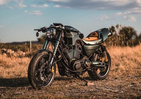 Base di partenza una XR1200, la Apex Predator (ovvero il predatore alfa o superiore, quello nella parte superiore della catena alimentare) si presenta con un'aria molto aggressiva. Lo scarico con i due silenziatori da 8 pollici sotto la sella appositamente studiati per questo modello, e lo stesso per il codino di ispirazione super sportiva con sella in alcantara.