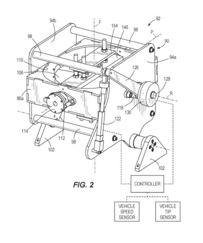 Il "gyroscopic rider assist device" di cui alla richiesta di brevetto 16/196067 dell'ufficio brevetti americano, è un semplice dispositivo giroscopico meccanico che prevede un volano rotante - grazie ad un motore elettrico - ad una velocità tra i 10000 e i 20000 giri/min, ma viene citata anche una variante che ruota tra i 30000 e i 40000 giri/min. Lo stesso giroscopio durante la marcia normale è libero di muoversi nei sensi di rollio e beccheggio, senza influenzare in alcun modo la guida se non per il suo peso. Sono presenti anche dei sensori di inclinazione e di velocità collegati ad un controller che, nel momento in cui la velocità scende sotto le tre miglia orarie e l'angolo di piega rispetto alla verticale viene ritenuto eccessivo, attiva una frizione e un giunto per far inclinare il giroscopio e applicare così alla moto una forza che la riporti in posizione verticale.