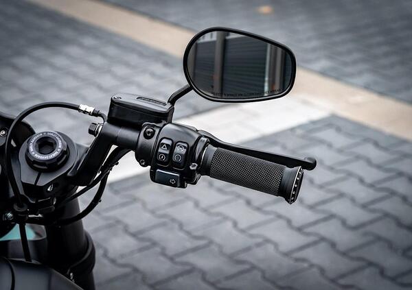 Le ruote sono quelle del modello di serie ma a cambiare aspetto sono il piccolo parafango davanti e quello corto e largo dietro (in lamiera di alluminio) che chiude posteriormente la sella e ingloba delle piccole luci a le per stop e frecce.