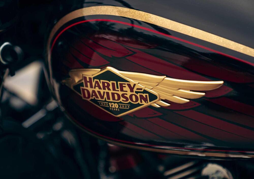 La stessa verniciatura speciale per il 120° Anniversario, con differente schema, sarà offerta su altri sei modelli Harley-Davidson in edizione limitata, con combinazioni di colori e design ispirati alle prime motociclette Harley-Davidson. Ognuno di essi è caratterizzato da una classica verniciatura con base Heirloom Red. I pannelli sono delineati da un gessato rosso brillante e riempiti da una sfumatura Midnight Crimson più scura. Ulteriori dettagli includono un medaglione Art Deco con aquila sul serbatoio, coprisella con pannelli laterali rossi e logo Harley-Davidson ricamato in oro e inserti del gruppo propulsore di colore rosso.
