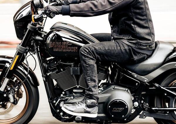 Motore, avantreno e scarico sono neri, con i cerchi Radiate in alluminio pressofuso (da 19 e 16 pollici) rifiniti in bronzo scuro opaco a contrasto con le componenti scure della moto. Anche per la Low Rider S i colori disponibili sono Vivid Black e Gunship Grey